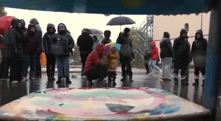 Trotz aller Widrigkeiten wurde auch gespielt: Dank der vielen kreativen Angebote, mitgebrachten Spielmaterialien und vor allem der Unterstützung vom Berliner Bündnis „Temporäre Spielstraßen“ – deren großer roter Ball zum Lieblingselement der Kinder wurde. Ein besonderer Dank gilt außerdem allen, die mitgeholfen haben, das Spielfest spontan mit Spiel und Wärme weiterzuführen, als nach etwa einer Stunde beschlossen wurde, gemeinsam zum benachbarten, wettergeschützten Spielmobilfest umzuziehen. Und Arba Manhillah, der mit seinen Trommeln viele junge Menschen zum Mitmachen angeregt hat.