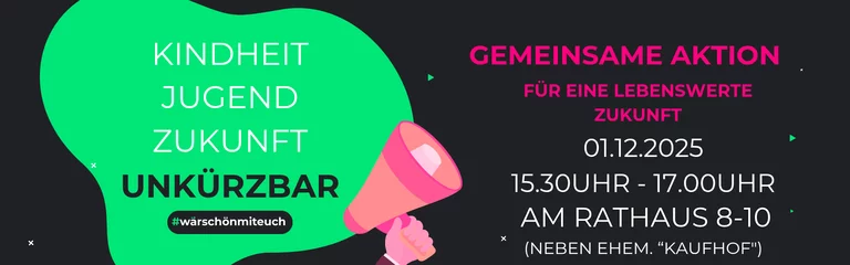 Unser Apell an die Stadträt:innen, Verwaltung, Bundes- und Landesregierung bleibt bestehen: Einsparungen an der Substanz – d.h. Kinder- und Jugendhilfe, Freie Kultur und sozialen Leistungen – schränken unser aller Zukunft ein. Wir lehnen auch die geplanten Sparmaßnahmen über 2025 hinaus entschieden ab. Jetzt ist der Moment, um aufzustehen und zu zeigen, wie substanziell wichtig die Unterstützung von Kindern & Jugendlichen und deren Familen ist. Es ist Zeit, gemeinsam für den Erhalt der kulturellen, demokratiebildenden, sportlichen und sozialen Angeboten in unserer Stadt einzustehen.